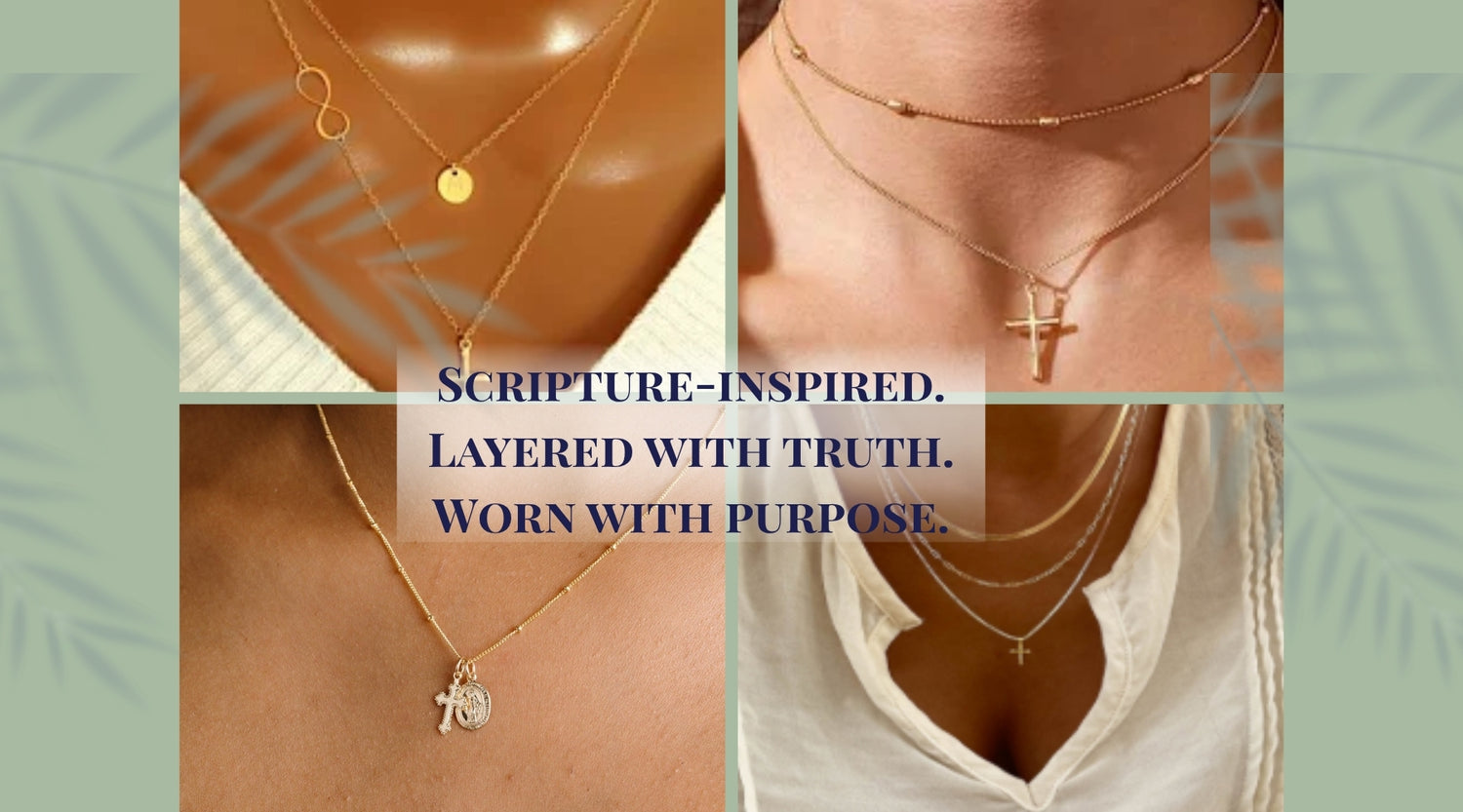 Layered scripture jewelry for everyday faith and elegant expression — with a Story Card to wear the Word close to your heart.