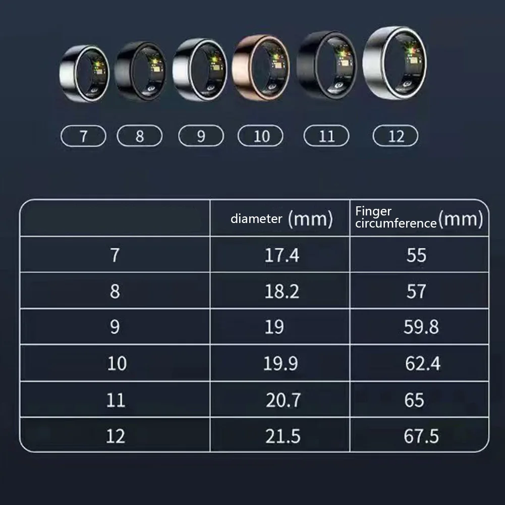 Smart Ring Health Tracker IP68 Waterproof Sleep Heart Rate Blood Oxygen Tracker Multi-sport Modes Activity & Fitness Tracker Ring Sleep Ring Up To 7-Day Battery for Activity Monitoring/Steps/Calories Feature: 1.Real-Time Health Monitoring: With the innovative Sleep Tracker Ring with Heart Rate, you can continuously track your heart rate, blood oxygen levels, and blood pressure 24/7. It faithfully records your activities, sleep patterns, and overall health, keeping you up-to-date on your wellness trip. 2.Comprehensive Activity Tracking: The Fitness Ring supports multiple sports modes such as running, cycling, walking, jumping rope, and swimming. It accurately records steps, distances, routes, and calories burned. You can set goals for a more organized workout plan, all while enjoying IP68 waterproof protection. 3.Fast Charging & Long Battery Life: This sleep heart rate blood oxygen tracker boasts an impressive battery that lasts 3-5 days on regular usage and up to 5-7 days on standby. It charges fully in just an hour with its 200mAh portable charger, enabling long-lasting performance. 4.24-Hour Health Monitoring: Easily connect the Health Monitor to a free app via Bluetooth-compatible. Compatible with Android 5.1 and above, iOS 8.0 and above, it offers real-time heart rate and blood oxygen readings for informed decisions to improve your health. 5.Remote Family Health Care: With the Activity & Fitness Tracker Ring Sleep Ring's app, add family or friends to monitor their health metrics like heart rate, blood pressure, steps, calories, and sleep quality, all without extra subscription fees. Specification: Origin: Mainland China Packing size: 80.00x80.00x50.00mm/3.15x3.15x1.97inch Size: 7#17.3mm, 8#18.1mm, 9#18.9mm, 10#19.8mm, 11#20.6mm, 12#21.4mm Material: Stainless steel Main functions: steps, distance, calorie calculation, heart rate, blood pressure, blood oxygen saturation, sleep tracking, care (add friends), smart photo taking Certification: CE.FCC Note: 1 X Smart Ring 1 X Charging Cable 1 X Instruction Manual 1 X Packaging Box |