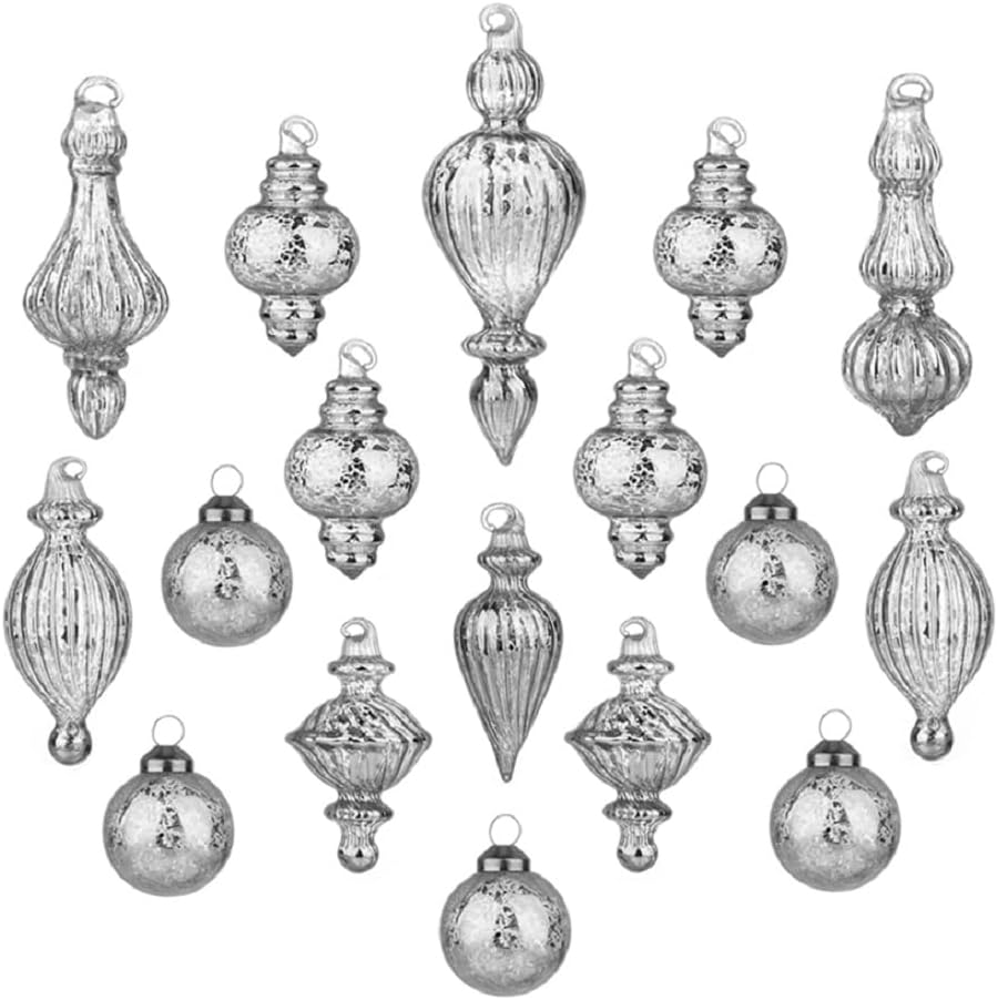 Mercury Glass Christmas Ball Ornaments for Holiday Decor (17 Pieces, Silver)