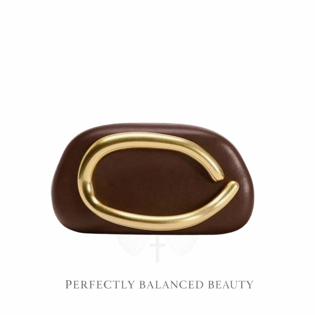 Sculptural Clutch Bag – A modern statement piece that completes the outfit with subtle drama and elegance.